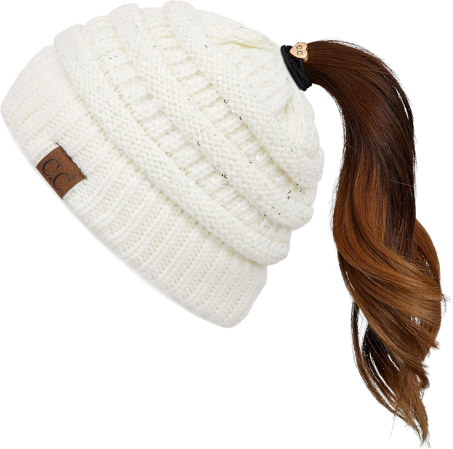 C C Messy Bun Ponytail Magic Magic Sequin Beanie Hat Mb 730 Beige At Amazon Women S Clothing Store
