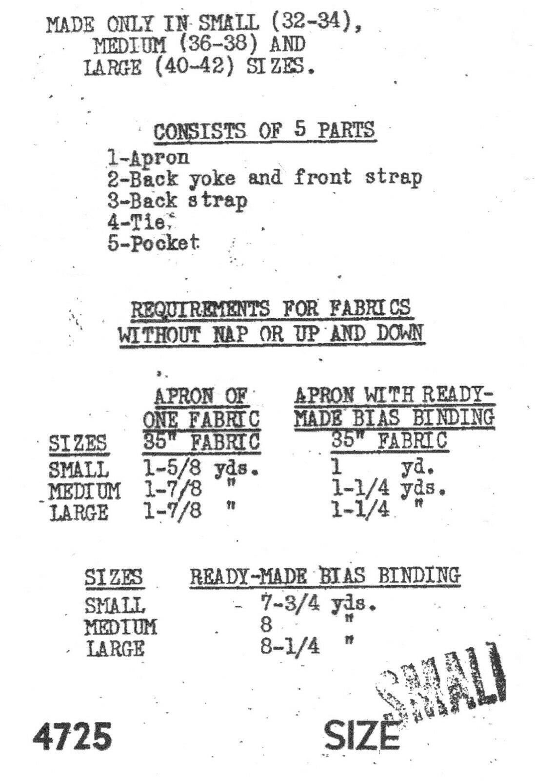 1940s Vintage Sewing Pattern Apron B32 34 Inch Small R29 Etsy
